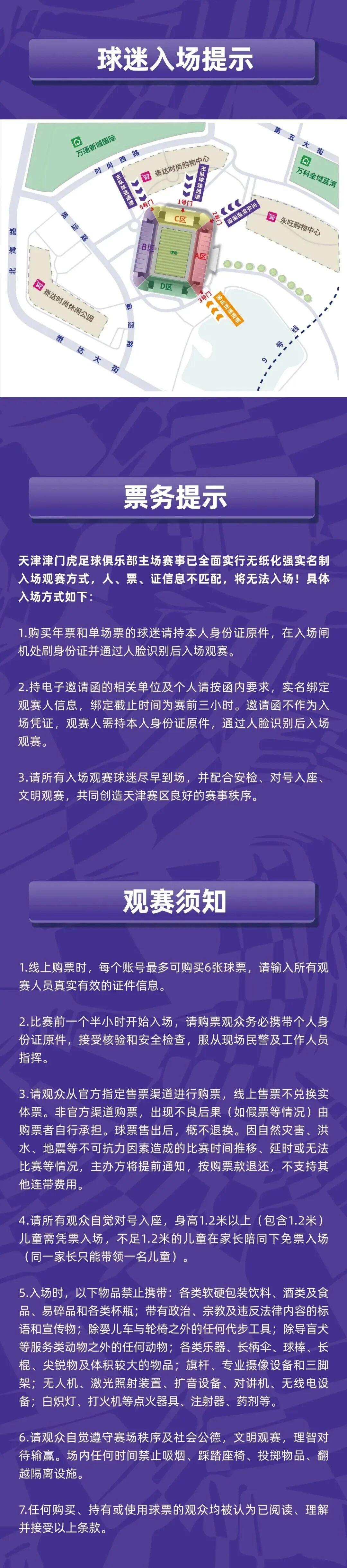 一、遵守入场规定。观众应按照赛事主办方规定的时间、地点和方式有序入场,自觉接受安全检查;严禁强行闯入比赛场内,严禁携带易燃易爆物品、管制刀具、宠物及其他可能影响赛事安全和公共秩序的物品。
