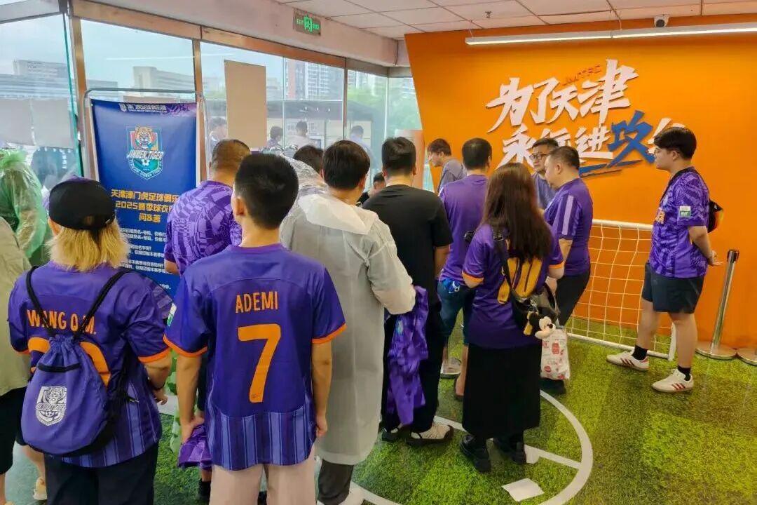 上个主场,不少球迷提前来到周边商圈就餐、购物。津门虎球迷官方店上新的随身斜挎包备受关注,成为热门单品,不少球迷在官方店排队购买。泰达足球场周边商圈环绕,毗邻泰达时尚购物中心、永旺梦乐城,为球迷提供餐饮购物一站式服务,足球经济效应显著。