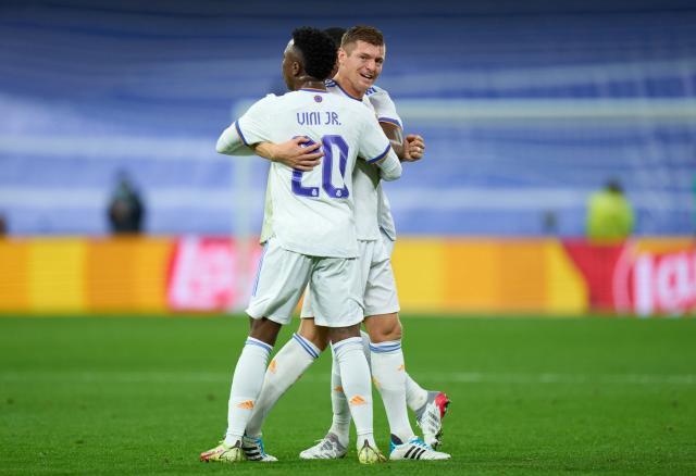 皇马阵容:1-库尔图瓦/2-卡瓦哈尔、3-米利唐、4-阿拉巴、23-费兰·门迪/10-莫德里奇、14-卡塞米罗(71'25-卡马温加)、8-克罗斯(78'15-巴尔韦德)/21-罗德里戈(78'11-阿森西奥)、16-约维奇(78'24-马里亚诺)、20-维尼修斯(81'7-阿扎尔)