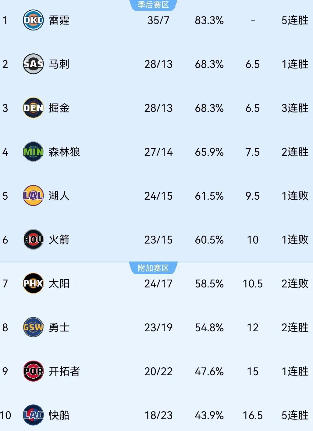 等等,快船竟然以18胜23负升至了附加赛区域......北伐之路,正式开启。